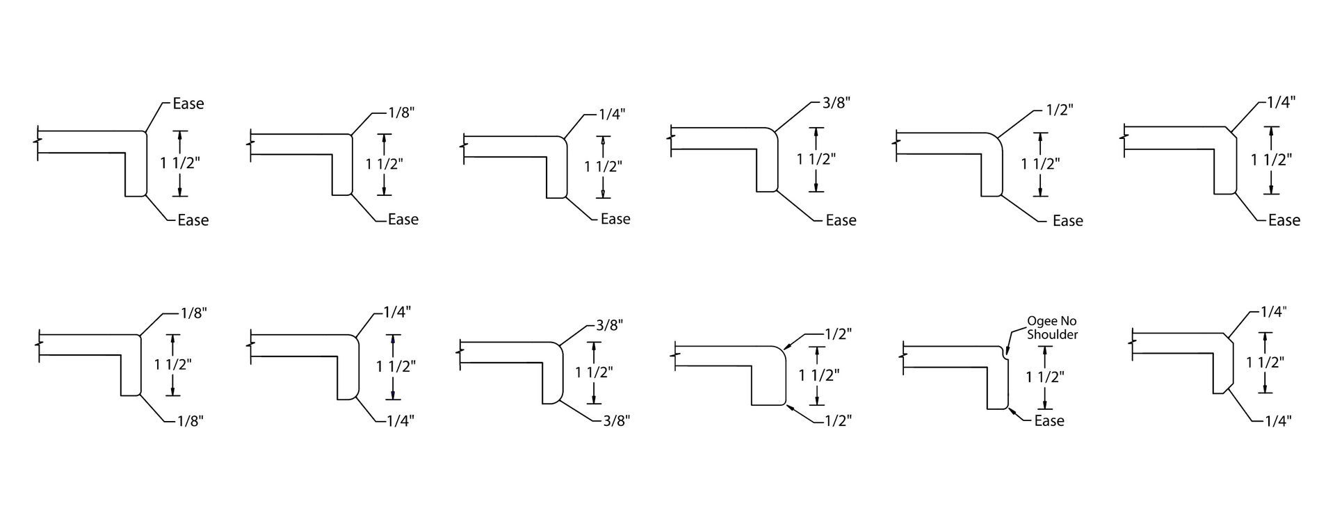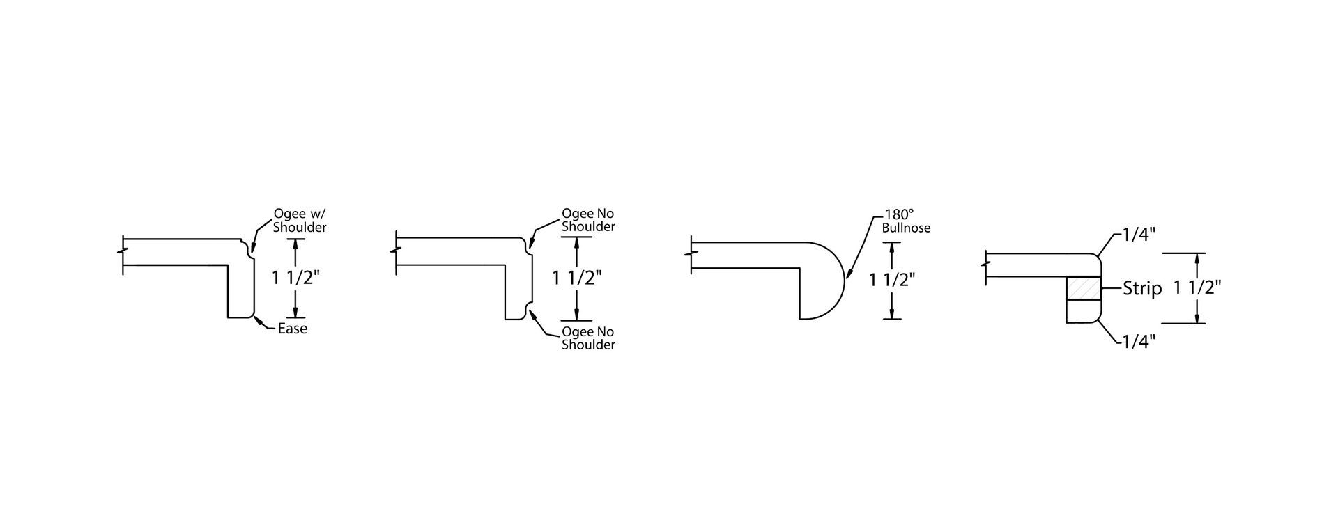 Solid surface countertops have several edge styles to choose from. Take a look at the options below.